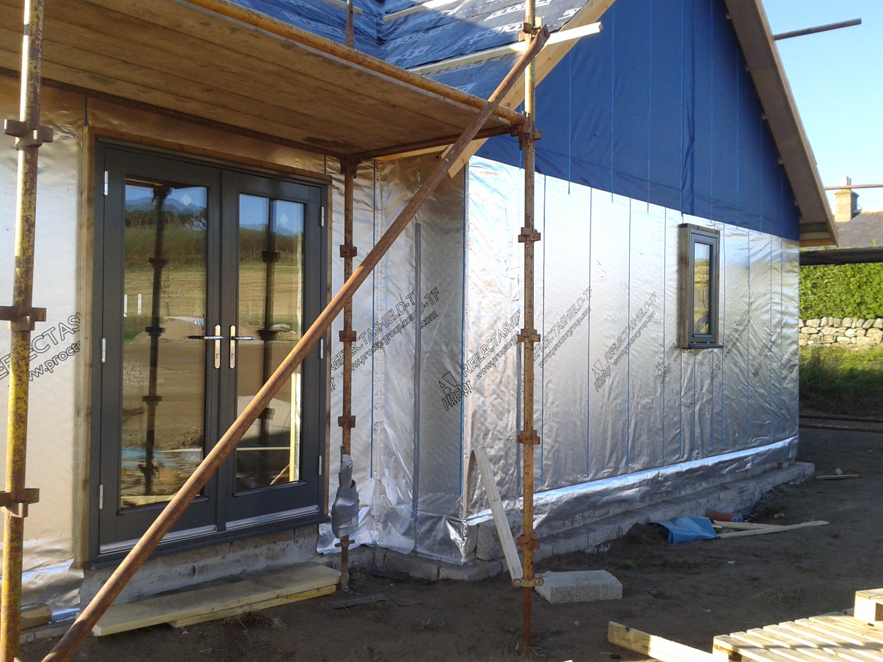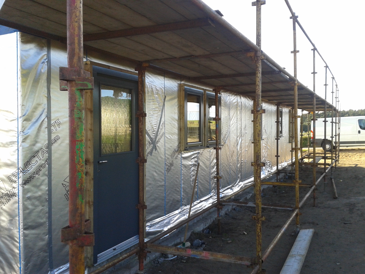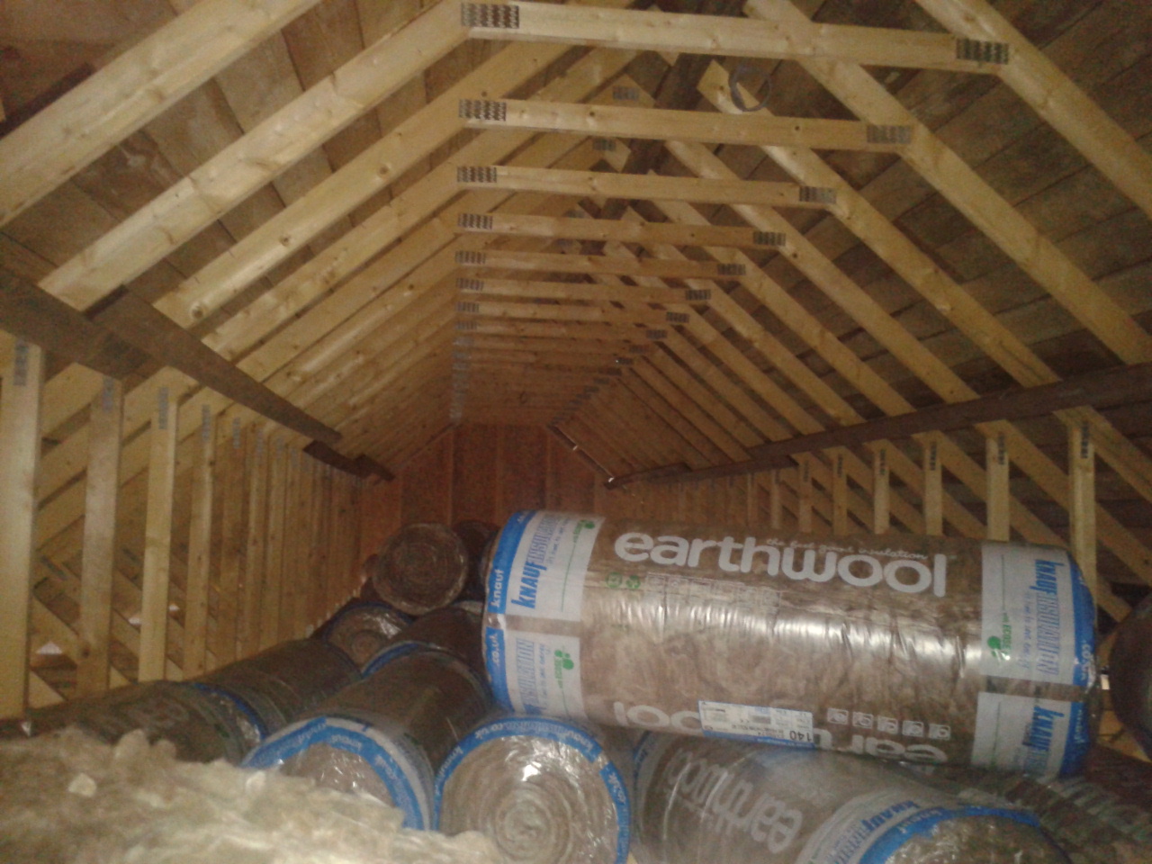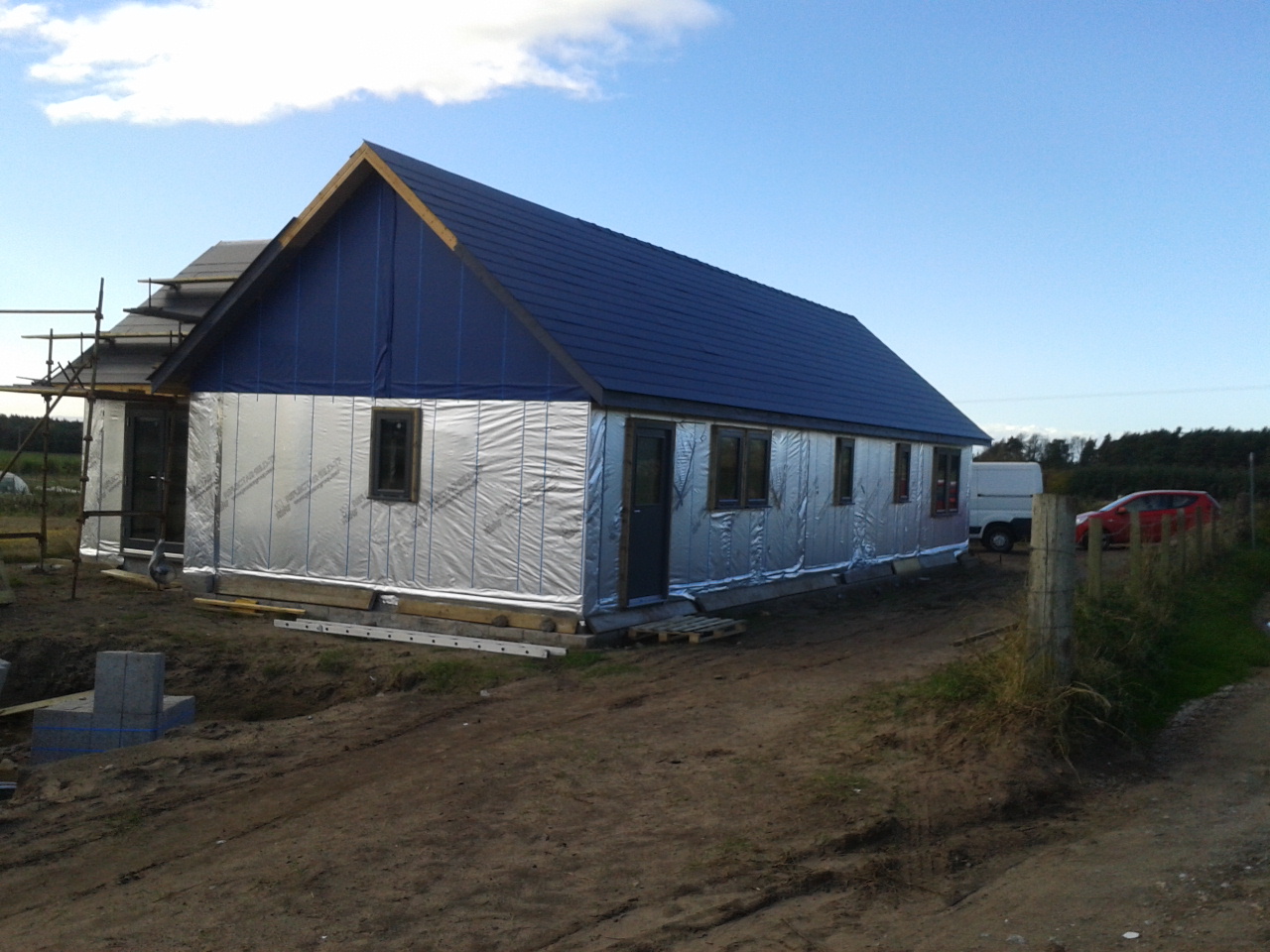 The ceiling plasterboard goes up tomorrow, and the walls on Friday – with good luck and a following wind. Today was finishing off the roof and putting in the soffits. We can now carry on staining the roof woodwork, probably this weekend.
