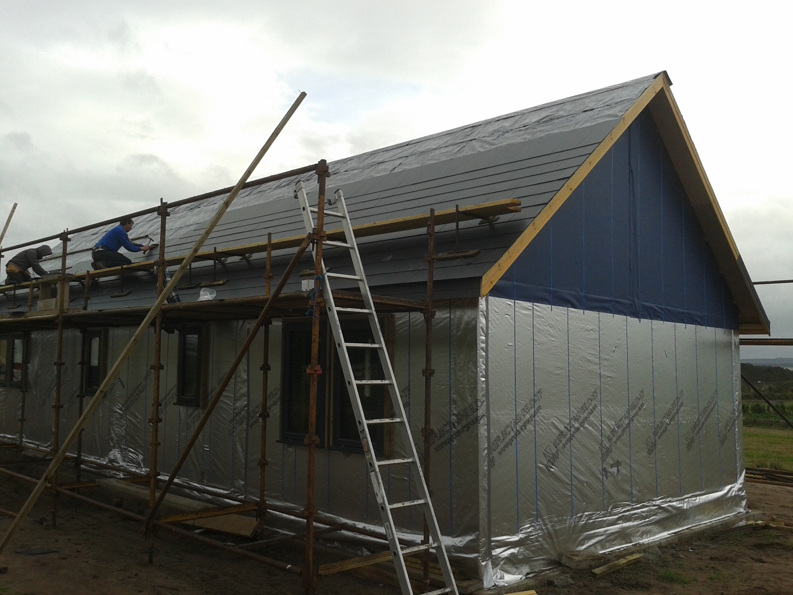 Brian and Grant, meanwhile were still hard at it and by the end of the day had completed one side of the roof and a lot of the other side – enough to put ridge tiles in place. It might not seem exciting to you but we love it!