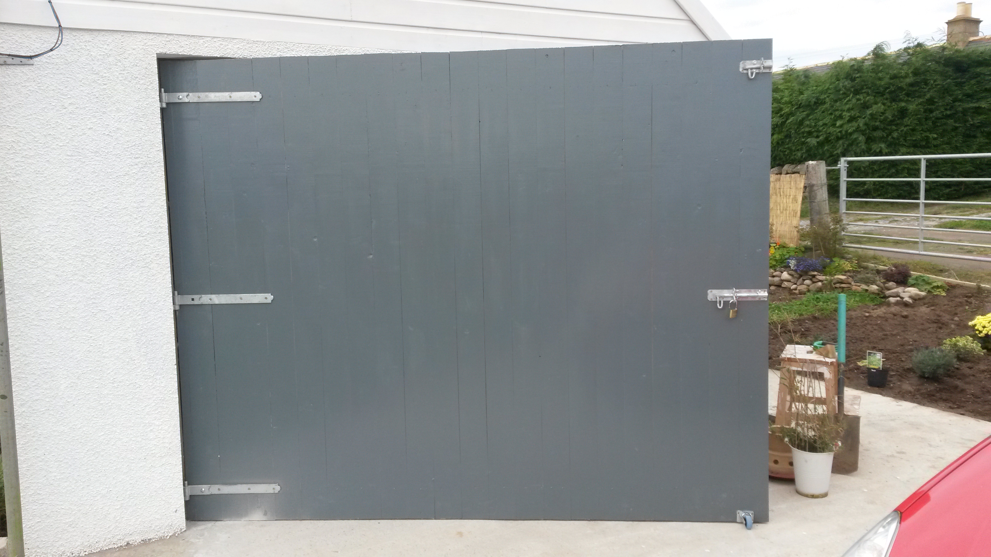 However, we now have a gate, we have finally swapped over the front door to what we originally specified and the garage grows slowly. We are also actively seeking out someone to put the white-wet-dash on the house. Hopefully the next photos will show something quite different.